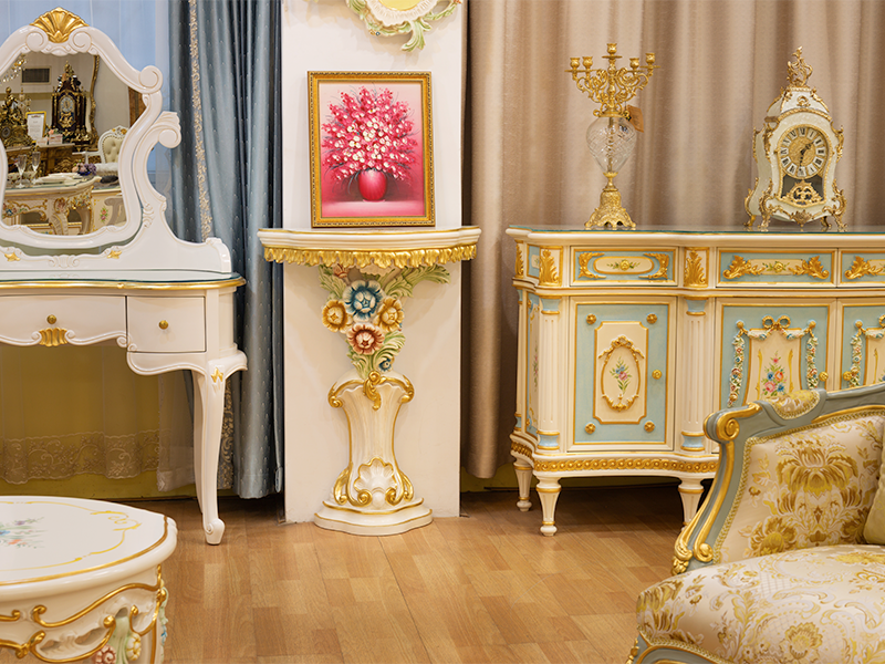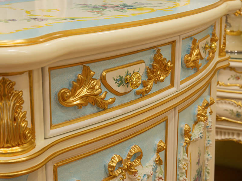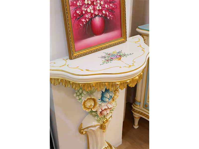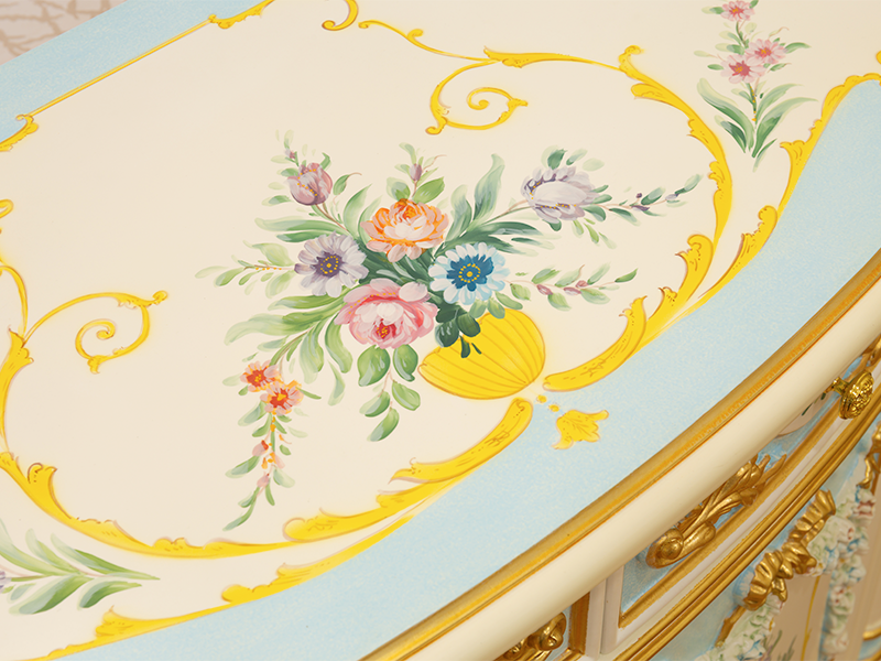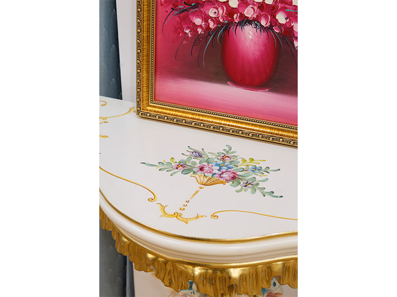 手繪筆觸溫度:桌面繪有細膩的法式花卉,手繪筆觸精
