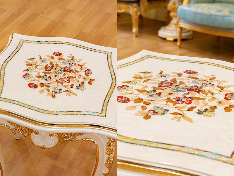 茶几 首頁 產品介紹 客廳系列 茶几 歐風經典 歐式宮廷 新古典 多瑙河系列 × 星綴鑲貝大小茶几 型號: A2022-5 長 :78 寬:78 高:78 cm 型號: A2022-6 長 :154 寬:154 高:55 cm 【產品概述】 Gemini 說了 這兩款法式宮廷風星綴鑲貝茶几展現了極致的奢 華工藝,完美融合了法國櫸木實木的堅固基底與 精緻的全手工雕刻。兩者皆採用了貝殼鑲嵌工藝 ,在桌面勾勒出華麗的藤蔓花紋,並搭配細膩的 手工貼製金箔,讓整體家具散發出貴氣息。 【產品特色】 天然貝殼手工鑲嵌 實木手工雕琢與拼接 手工貼製金箔 如需報價/訂購/租借 請加入LINE@ 將有專人幫您服務~ 部分商品因繁複手工與全進口的關係 交期會在3-6個月 但能保證,美好的高質感絕對值得等待! Gemini 說了 星綴鑲貝大小茶几A2022-5.6 × 蔚藍之韻 - 圓茶几 型號: XF22-1005 長 :53 寬:53 高:70 cm 【系列概述】 緋韻花語系列以自然奢華為核心,將貝殼的幻彩 這款蔚藍之韻圓茶幾是一款融合英式古典與現代 工藝的頂級家具。頂級法國白櫸木與細膩的純手 工雕刻,展現出不凡的藝術價值。這款產品擁有 幾大顯著優點 經典的貓腳設計,流暢的弧度與手貼金箔 實木鑲嵌貝殼,散發珍珠般的光澤 天然貝殼手工鑲嵌 實木手工雕琢與拼接 手工貼製金箔 【產品特色】 經典貓腳設計 頂級法國白櫸木 手工貼製金箔 如需報價/訂購/租借 請加入LINE@ 將有專人幫您服務~ 部分商品因繁複手工與全進口的關係 交期會在3-6個月 但能保證,美好的高質感絕對值得等待! 蔚藍之韻圓茶几XF22-1005 × 蝶影花語 - 小茶几 型號: LV11075 長 :69 寬:69 高:71 cm 【產品概述】 這款圓茶几採用了典型的法式羅可可(Rococo) 風格。最吸睛的莫過於其潔白如玉的立柱几腳, 上面雕琢了密集的立體花卉,彷彿繁花盛開。桌 面邊緣與底座輔以金箔質感的包邊,與側邊鑲嵌 精美木藝與彩繪的邊櫃相得益彰,營造出一種貴 族宮廷般的居家氛圍。 極致的工藝美學 奢華配色提升空間氣場 手工貼製金箔 【產品特色】 單柱式雕花底座 實木鑲嵌貝殼 手工貼製金箔 如需報價/訂購/租借 請加入LINE@ 將有專人幫您服務~ 部分商品因繁複手工與全進口的關係 交期會在3-6個月 但能保證,美好的高質感絕對值得等待! 蝶影花語圓茶几LV11075 × 緋韻花語 - 小茶几 型號: AJM-008 長 :54 寬:54 高:65 cm 【系列概述】 緋韻花語系列以自然奢華為核心,將貝殼的幻彩 與厚實木材的溫潤完美揉合。本系列靈感源自古 典鑲嵌藝術(Marquetry),透過手工打磨的貝 殼片,在木質紋理上點綴出繁花意象。這不只是 一件小茶几,更是大自然素材交織出的立體詩篇 ,展現出法式精緻與現代工藝交融的優雅氣度。 天然貝殼手工鑲嵌 實木手工雕琢與拼接 手工貼製金箔 【產品特色】 經典貓腳設計 頂級法國白櫸木 手工貼製金箔 如需報價/訂購/租借 請加入LINE@ 將有專人幫您服務~ 部分商品因繁複手工與全進口的關係 交期會在3-6個月 但能保證,美好的高質感絕對值得等待! 緋韻花語小茶几AJM-008 × 蝶戀花貝殼鑲嵌小茶几 型號 MD2005 尺寸:面寬58 * 深58 * 高65 cm 採用頂級進口法國白櫸木 手工雕刻與貼製金箔 每一個拼花都是採用不同的木材 雕刻好形狀再拚上形成美麗的圖案 細細品味還可以看到美麗的折射光芒 精緻高雅 品味兼具 給您最浪漫唯美的高級法式風格 每一個工藝都在在的顯示它的獨特及華麗 不只是家具 同時也是值得收藏的藝術品唷! 如需報價/訂購/租借 請加入LINE@ 將有專人幫您服務~ 部分商品因繁複手工與全進口的關係 交期會在3-6個月 但能保證,美好的高質感絕對值得等待! 蝶戀花貝殼鑲嵌小茶几MD2005- × 蝶戀花貝殼鑲嵌大茶几 型號 MD2004 尺寸:面寬139 * 深139 * 高52 cm 採用頂級進口法國白櫸木 手工雕刻與貼製金箔 每一個拼花都是採用不同的木材 雕刻好形狀再拚上形成美麗的圖案 細細品味還可以看到美麗的折射光芒 精緻高雅 品味兼具 給您最浪漫唯美的高級法式風格 每一個工藝都在在的顯示它的獨特及華麗 不只是家具 同時也是值得收藏的藝術品唷! 如需報價/訂購/租借 請加入LINE@ 將有專人幫您服務~ 部分商品因繁複手工與全進口的關係 交期會在3-6個月 但能保證,美好的高質感絕對值得等待! 蝶戀花貝殼鑲嵌大茶几MD2004 × 璀璨之章-藍晶映光小茶几 型號 DKCT 直徑60 * 高70 cm 採用頂級進口法國白櫸木 手工雕刻與貼製金箔 每一個拼花都是採用不同的木材及貝殼 雕刻好形狀再拚上形成美麗的圖案 細細品味還可以看到貝殼的折射光芒 精緻高雅 品味兼具 給您最浪漫唯美的高級法式風格 每一個工藝都在在的顯示它的獨特及華麗 不只是家具 同時也是值得收藏的藝術品唷! 如需報價/訂購/租借 請加入LINE@ 將有專人幫您服務~ 部分商品因繁複手工與全進口的關係 交期會在3-6個月 但能保證,美好的高質感絕對值得等待! 璀璨之章-藍晶映光小茶几DKCT-- × 璀璨之章-巧克力絲絨小茶几 型號 DKCT 直徑60 * 高70 cm 採用頂級進口法國白櫸木 手工雕刻與貼製金箔 每一個拼花都是採用不同的木材及貝殼 雕刻好形狀再拚上形成美麗的圖案 細細品味還可以看到貝殼的折射光芒 精緻高雅 品味兼具 給您最浪漫唯美的高級法式風格 每一個工藝都在在的顯示它的獨特及華麗 不只是家具 同時也是值得收藏的藝術品唷! 如需報價/訂購/租借 請加入LINE@ 將有專人幫您服務~ 部分商品因繁複手工與全進口的關係 交期會在3-6個