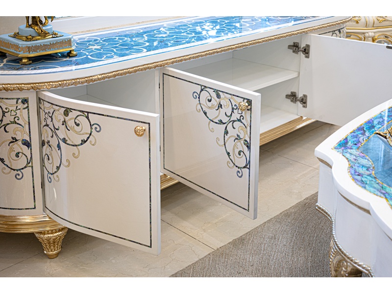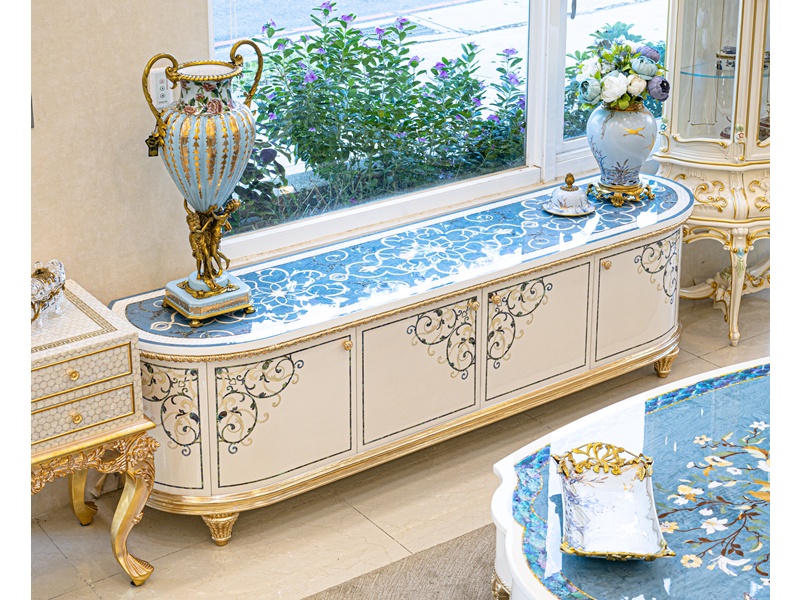 天藍之韻 - 貝殼鑲嵌拼花電視櫃