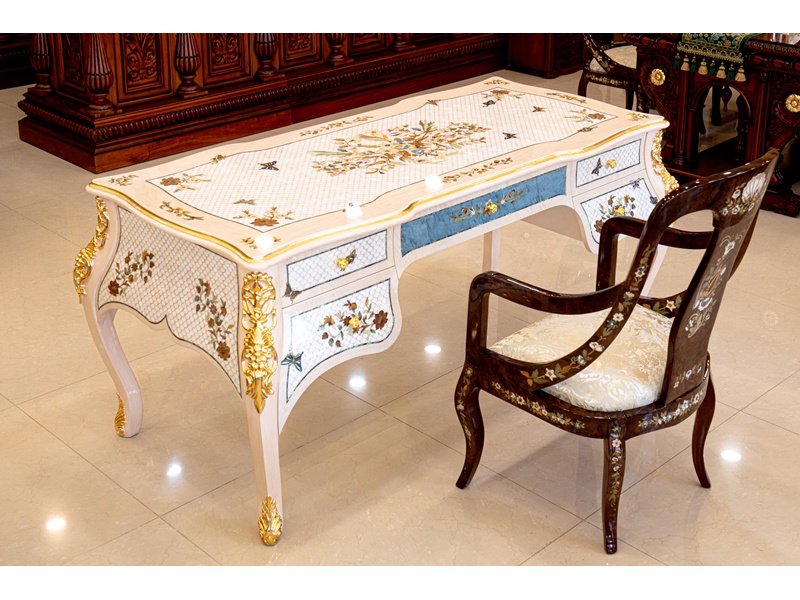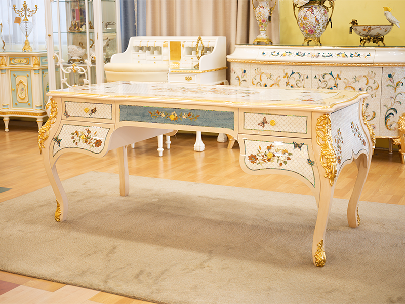 葛瑞絲辦公桌(白+銀箔)(白+金箔)