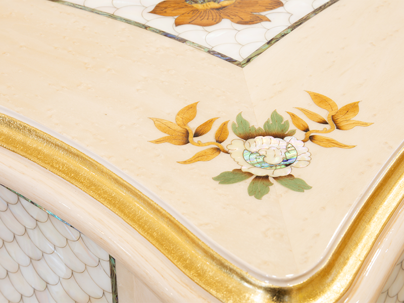全手工實木製作、貼金箔、選用純銅五金配件